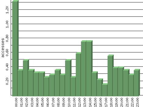 | Hour | Accesses | % | Bytes | % | Visits | % | Bits per Sec | Bytes per Sec |