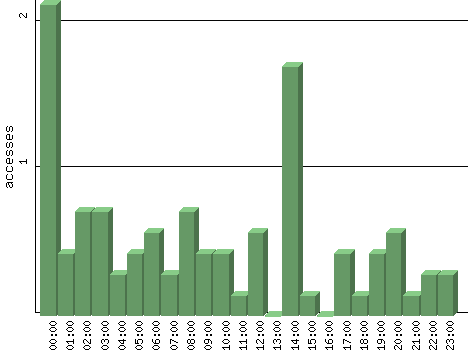 | Hour | Accesses | % | Bytes | % | Visits | % | Bits per Sec | Bytes per Sec |